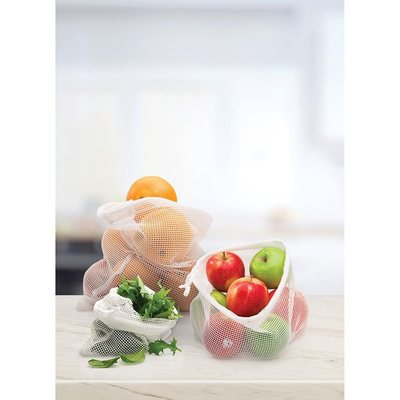 Place loose fruit and vegetables inside these lightweight mesh bags for weighing at the checkout and carrying home. Breathable construction means you can place them straight in the fridge.