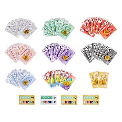 -Contains instructions, 65 game cards and 4 reference cards packaged in a novelty Lucky Cat shaped case