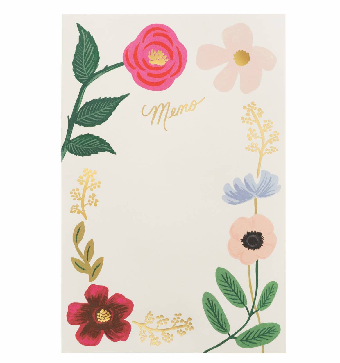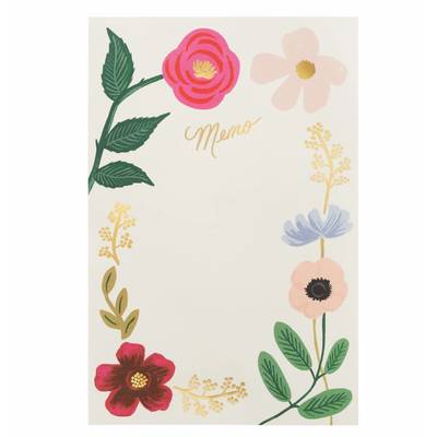 New to the Rifle Paper Co. range are these handy memo notepads that are a great addition to any office or home desk! The Wildflower memo notepad features a classic Rifle floral design with space to write out your notes, and is slightly larger than A5 size. Featuring gold foil accents, this memo notepad has 65 easy tear-off sheets and a sturdy cardboard backing.