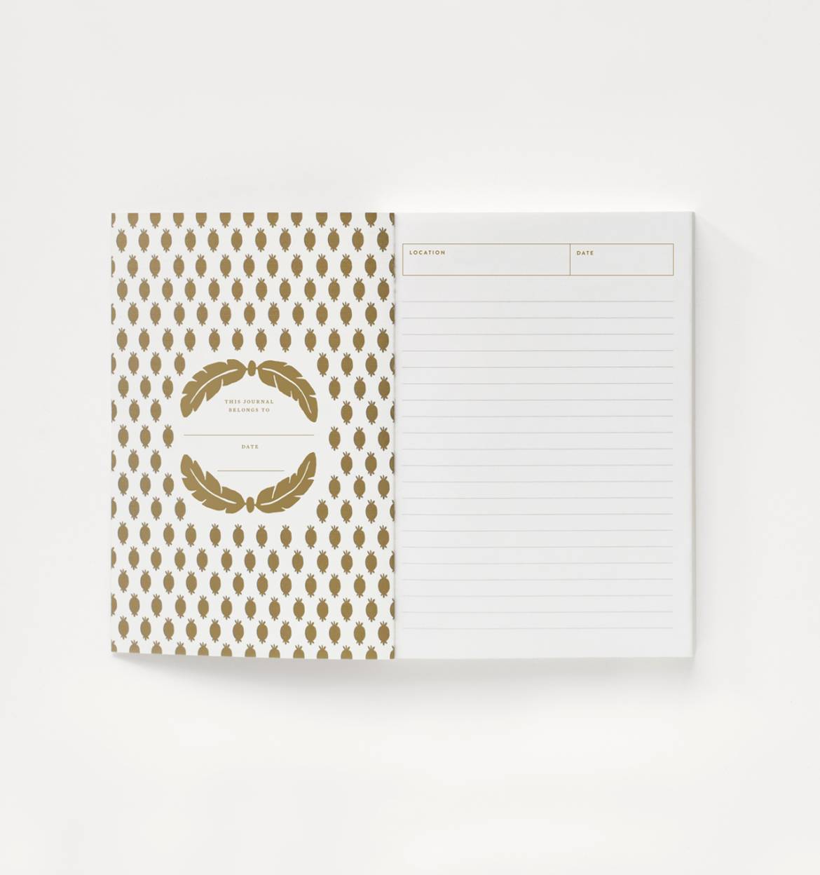 These medium-sized journals feature 208 pages of ruled natural vellum paper, and a soft linen cover which has been printed with one of head designer Anna Bond's original illustrations. Inside, the end papers, ruled lines and other details are printed in gold foil - a stunning finish.