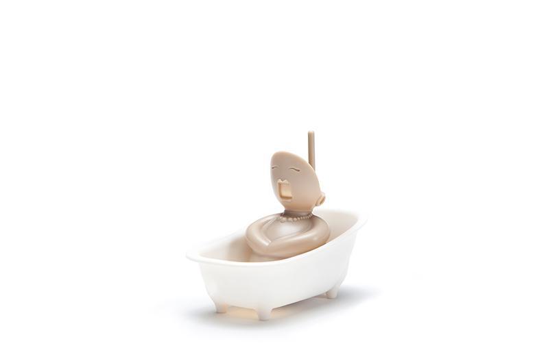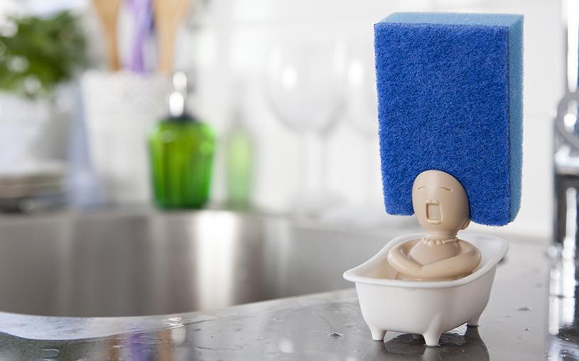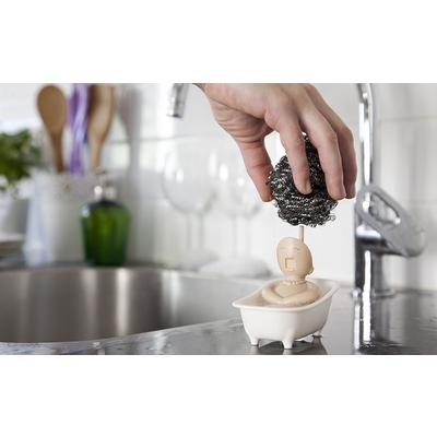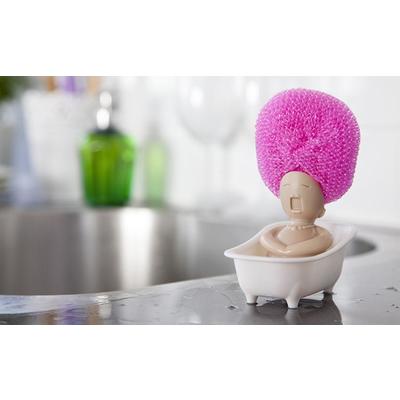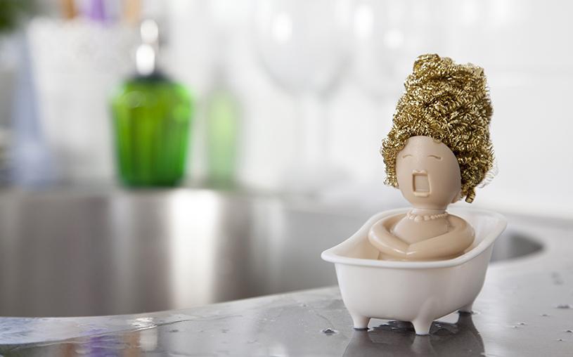 This diva won’t do the dishes for you, but she sure wants to help! This lovely little bath singer will hold your scrubber. No need to go to a hair salon – you can change her style by switching to a different scrubber. So don’t be shy, hum along!