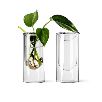 The Propagation Vase is more than a mere decorative feature (though its looks are more than compelling enough to stand on its own), providing a home for cuttings, bulbs and stones to put down roots as you pay witness to the miracle of nature. Through the transparent borosilicate glass, you can marvel at the methodical growth of new life, privy to secrets that usually hide in the soil.