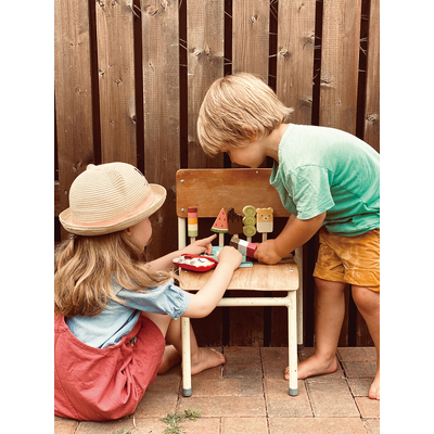 A card reader with squishy number buttons, a slot in which to use the Tender Leaf credit card, and a top slot to place one of 5 differently illustrated receipts.