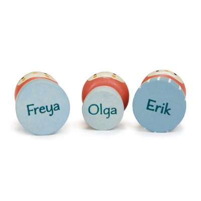 Living deep in the forest, amongst the toadstools and leaves, are our Nordic gnome family. Freya the mother looks after Olga and Erik in their leafy glade. The set comes with; 3 gnome figurines, 3 toadstools and 2 leaves.