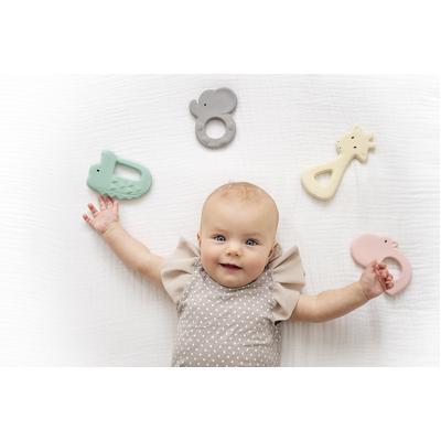 An adorable all rubber hippo flat teether that is great for little hands to grab. Made from sustainable natural rubber. 100% fragrance-free. Hand-painted with water-based non-toxic dyes. Packaging printed using a recyclable board and non-toxic dyes.