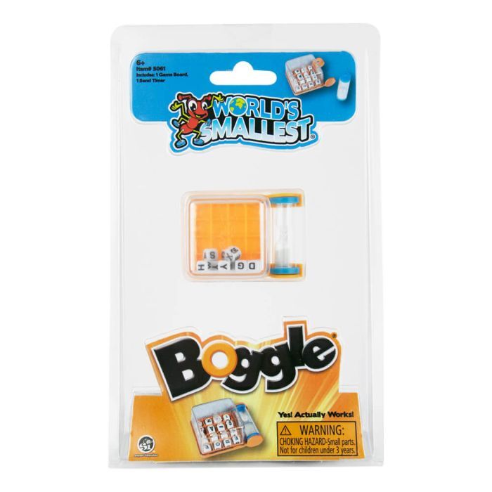 Shake up word-finding fun with World’s Smallest Boggle! This miniature edition brings the fast-thinking word game you love into a tiny, travel-friendly size that’s perfect for word lovers and puzzle fans.