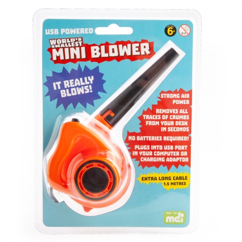 It really blows! USB-powered mini blower that's perfectly sized to whisk away the crumbs on your desk. Bright vibrant orange colour with a detachable black nozzle and an extra long 1.5 metre cable.